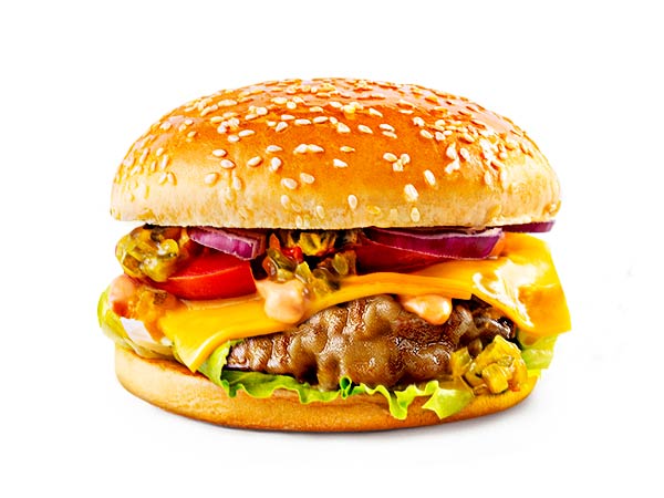 Большая булочка с кунжутомкотлета мяснаясалатпомидорлуксыр Хохландсоус релиш